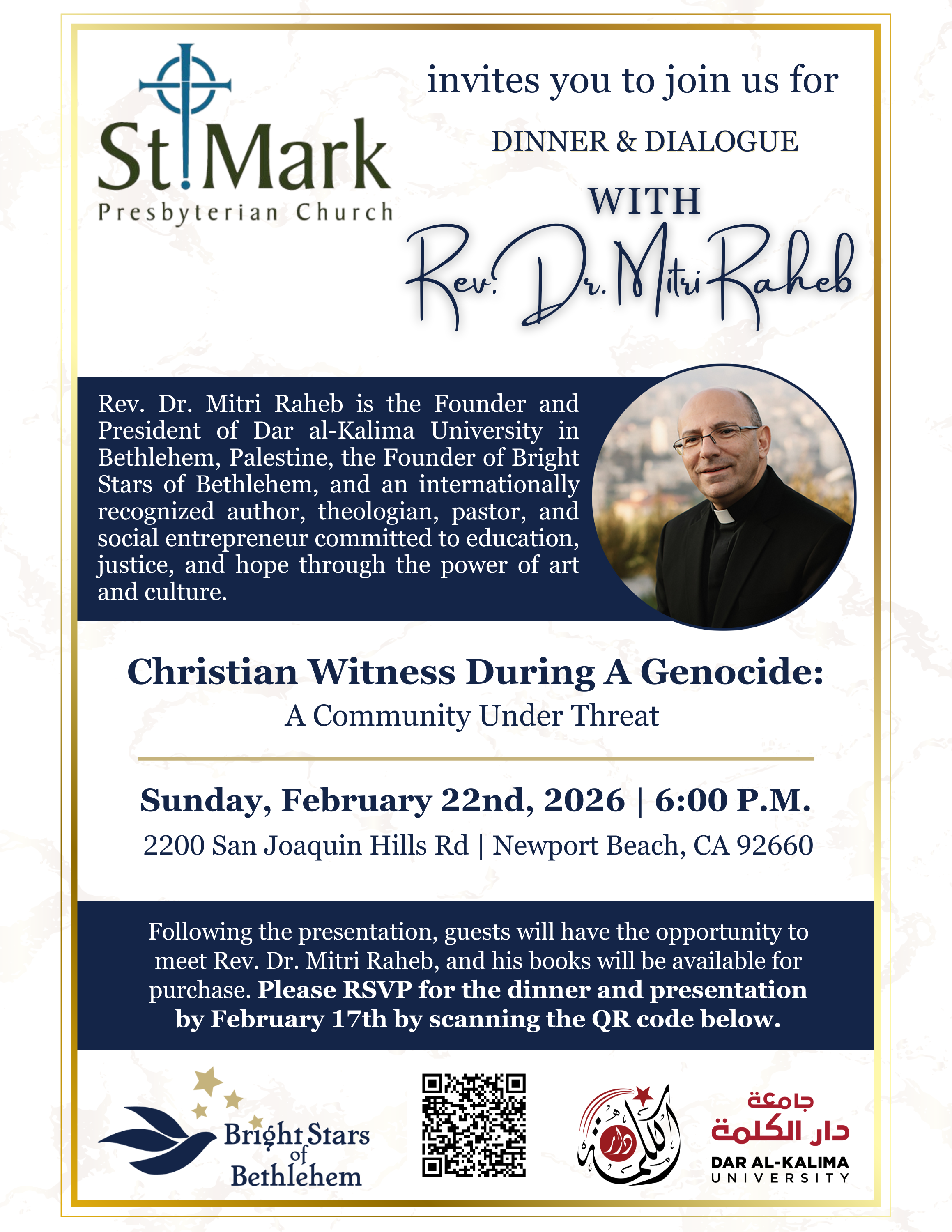 St. Mark Presbyterian Church Event Sunday, February 22, 2026 6:00 PM 8:00 PM Google Calendar ICS Register
