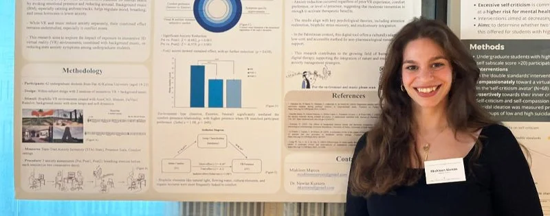 As she prepared for graduation, Mishleen reflected on her experiences in the art therapy program. "My thesis project addresses the effect of immersive 3D environments and background music on anxiety symptoms for students at Dar al-Kalima University," she explained. Participants engaged in a series of breathing exercises and virtual reality sessions over two days, providing fascinating insights into the therapeutic potential of combining visuals and music.